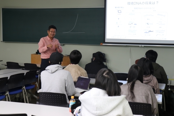 午前は環境DNAについてのレクチャーが行われ、環境DNAという技術の解説から、